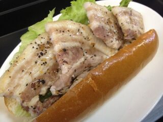 シュラスコは南米の肉料理です。豚ばら肉に塩たれをかけました。