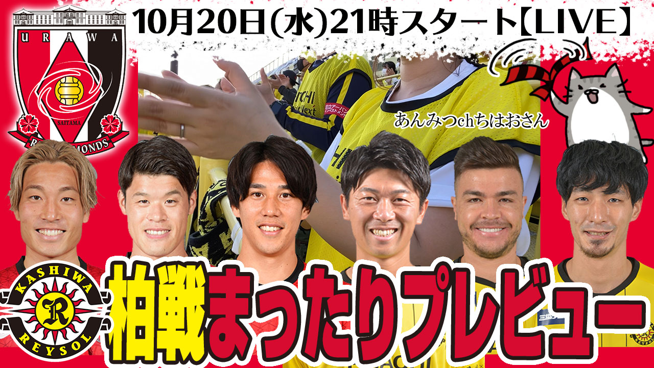 「浦和レッズvs柏レイソル」まったりプレビューLIVE【ゲストはレイソル応援You Tuberあんみつchちはおさん】(10月20日(水)21時スタート)