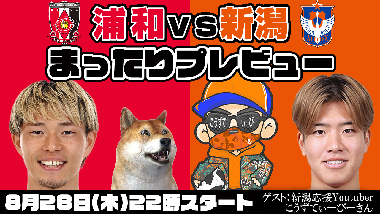 「浦和レッズvsアルビレックス新潟」まったりプレビューLIVE【ゲストは新潟応援You Tuberこうずてぃーびーさん】(8月28日(木)22時LIVEスタート予定)