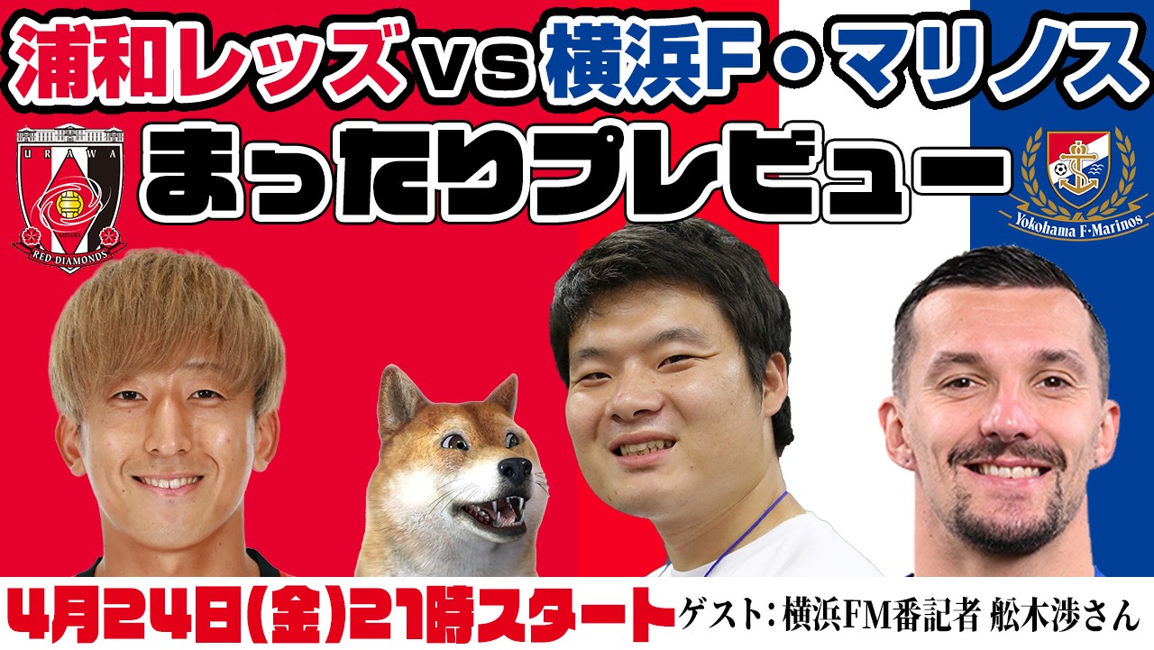 「浦和レッズvs横浜F・マリノス」まったりプレビューLIVE【ゲスト:横浜FM番記者 舩木渉さん】(4月24日(金)21時LIVEスタート予定)