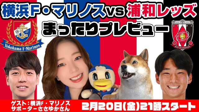 浦議チャンネル 「横浜F・マリノスvs浦和レッズ」まったりプレビューLIVE(ゲスト:横浜F・マリノスサポーターささゆかさん)【2/20(金)21時スタート】 2026年2月20日 Editor_kaname [浦議]浦和レッズについて議論するページ